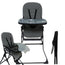 Der nass abwaschbare Kunstledersitz ist weich gepolstert und mit einem Gurtsystem ausgestattet. Der aufsteckbar Tisch mit separatem, zusätzlichem Tablett lässt sich in mehreren Positionen einrasten, ist einfach zu reinigen und hat eine vorgefertigte Becherhalterung eingearbeitet.