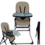 Der nass abwaschbare Kunstledersitz ist weich gepolstert und mit einem Gurtsystem ausgestattet. Der aufsteckbar Tisch mit separatem, zusätzlichem Tablett lässt sich in mehreren Positionen einrasten, ist einfach zu reinigen und hat eine vorgefertigte Becherhalterung eingearbeitet.