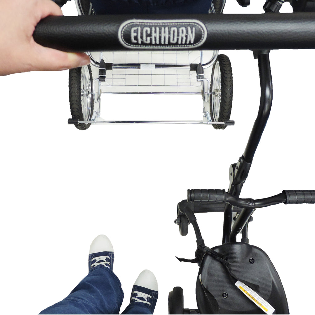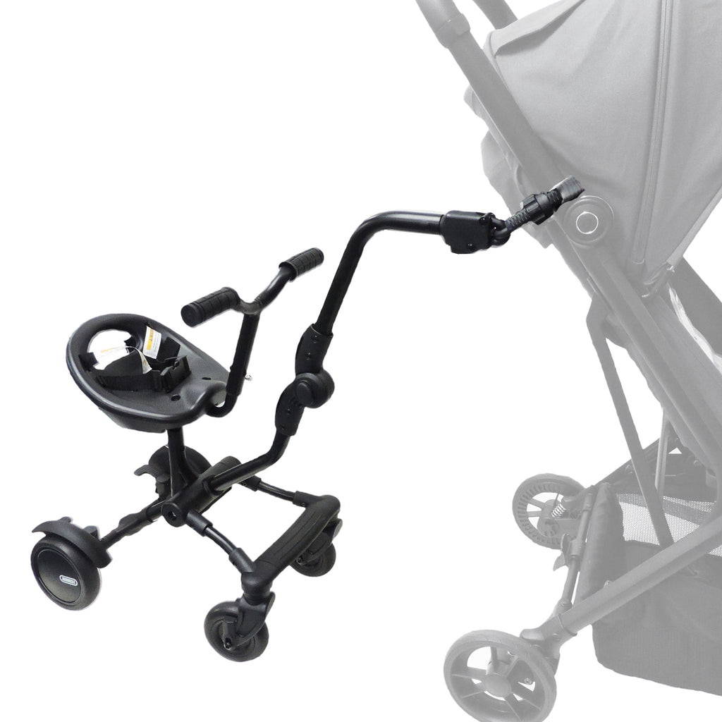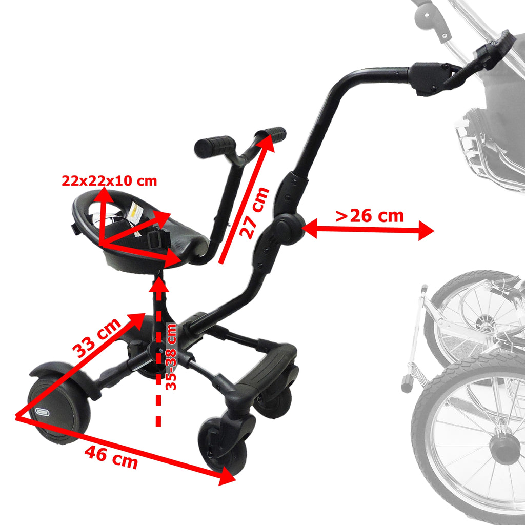 Dank innovativer Befestigung passt dieser Sitz für das Geschwisterkind an nahezu alle handelsüblichen Kinderwagen und Buggys, unabhängig vom dort verbauten Bremssystem!